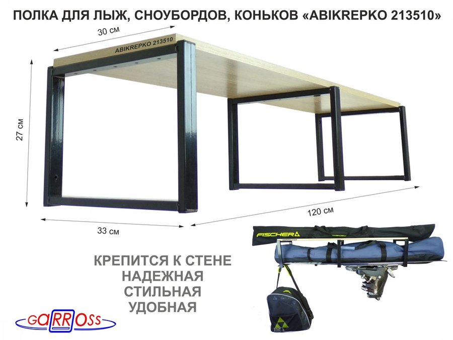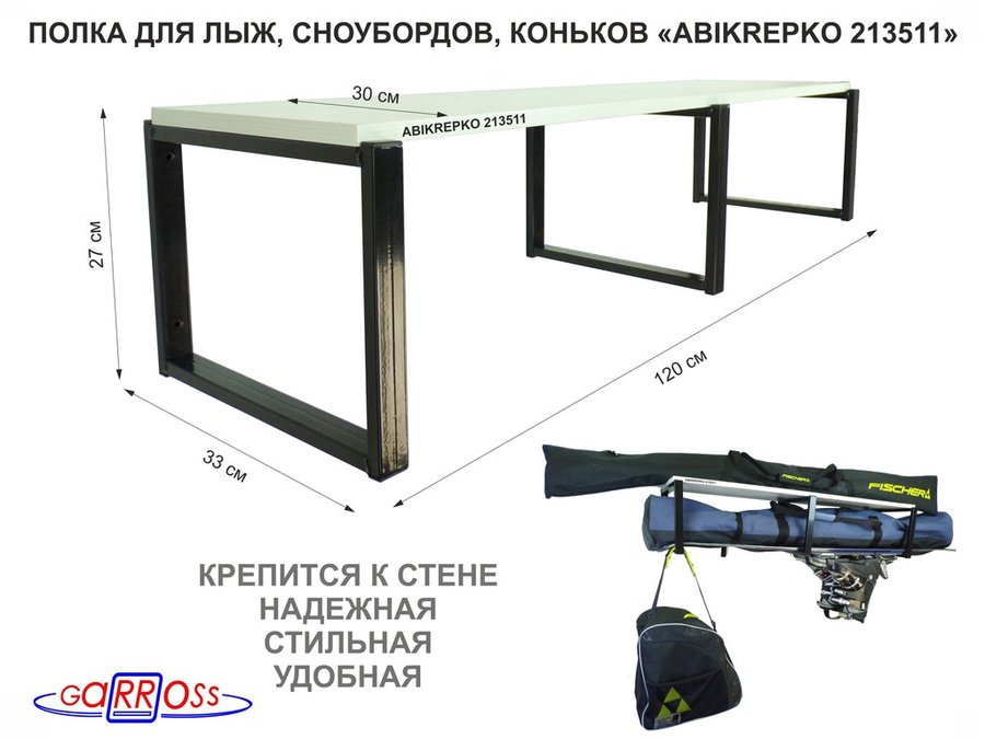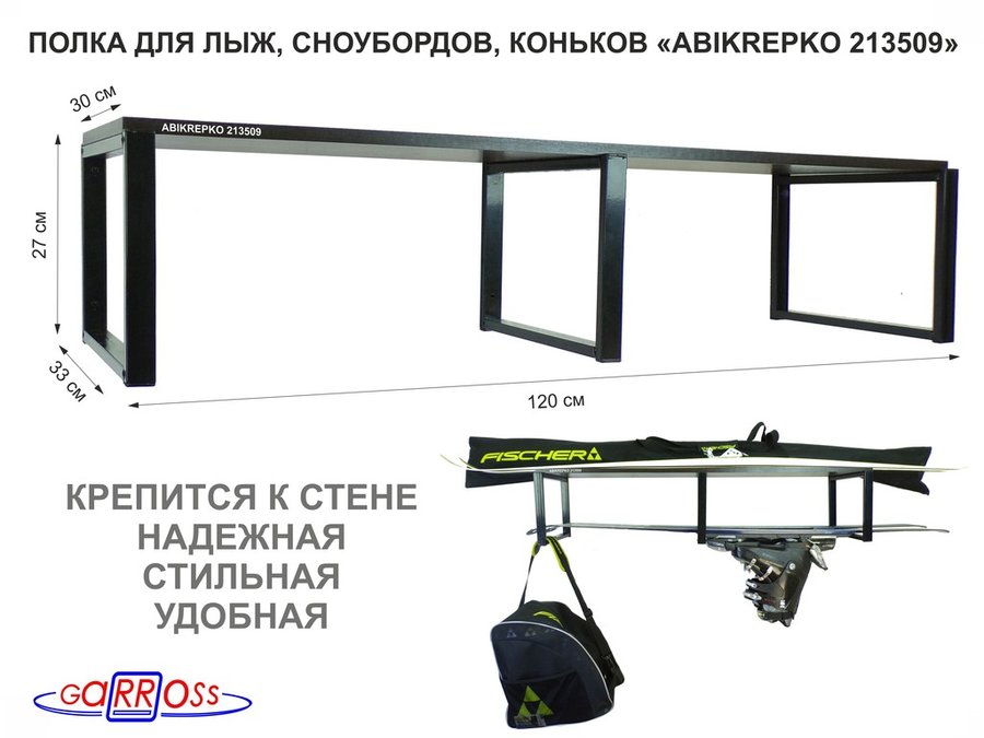 Полки для лыж , сноубордов , коньков "ABIKREPKO" высота 27см, 120х30см, 1 уровень
