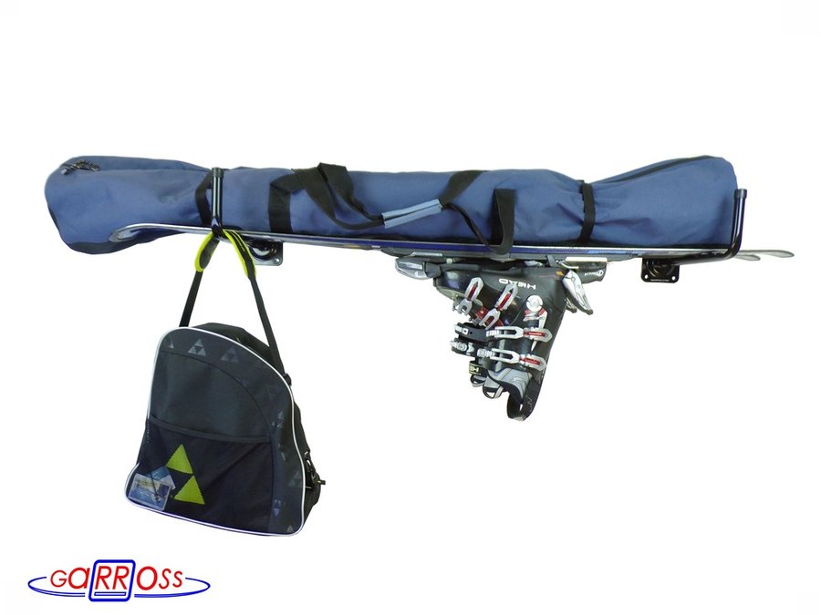 • Полка надежно крепится к стене при помощи анкеров или шурупов с дюбелями, на ней можно разместить сноуборд, коньки, лыжи, ботинки