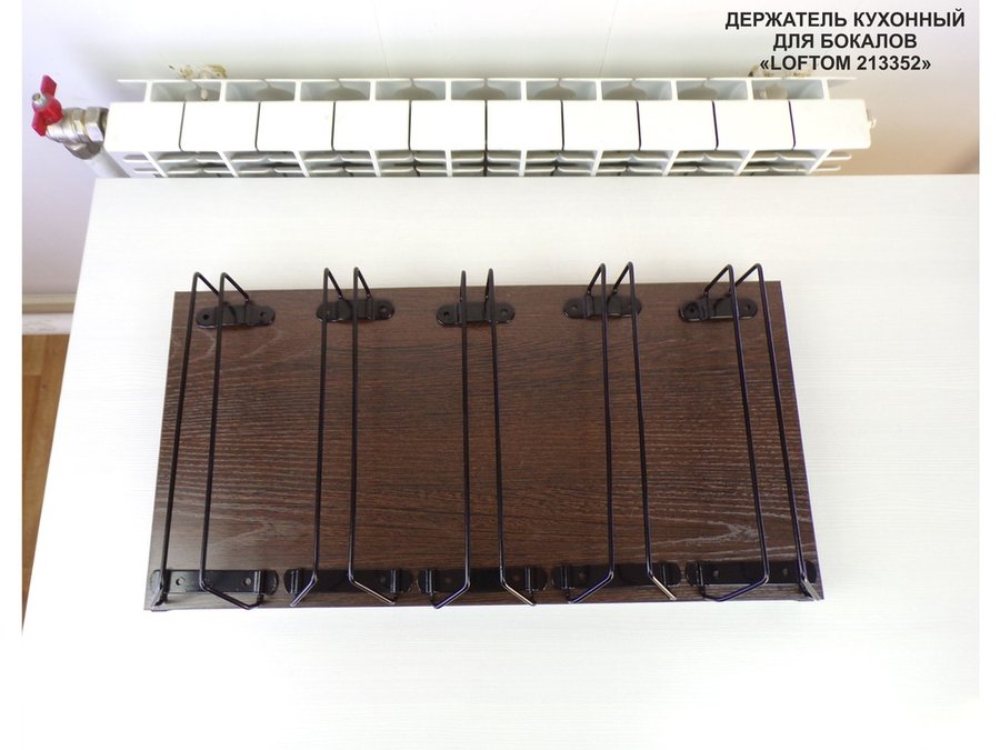 Держатель можно разместить под полкой или внутри шкафа (закрепив его на верхней стенке). Бокалы больше не будут пылиться, а хозяйкам не придется их перемывать. Держатель навесной для бокалов устанавливается легко - крепится к полке.