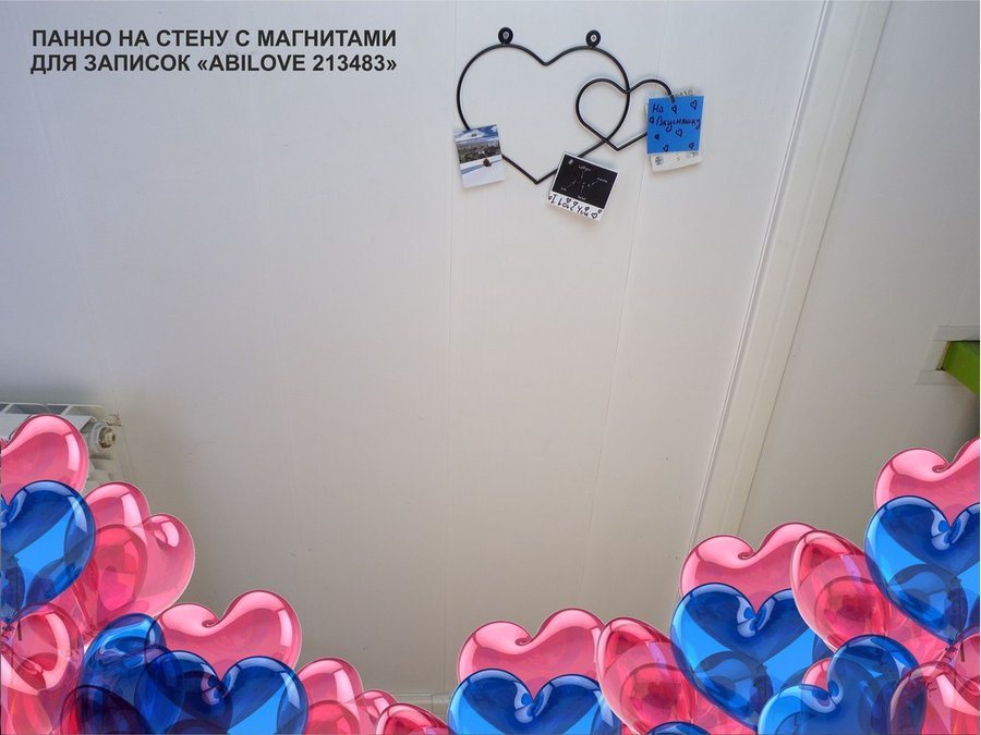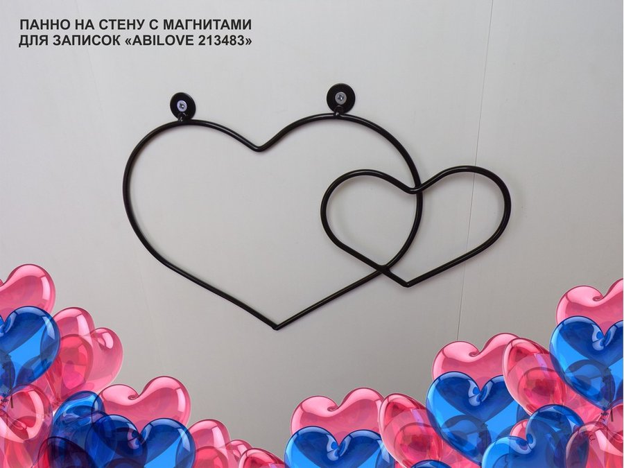 В корзину Купить в 1 клик Панно на стену с 3 магнитами для записок и фотографий, два сердца, чёрный "ABILOVE 213483"