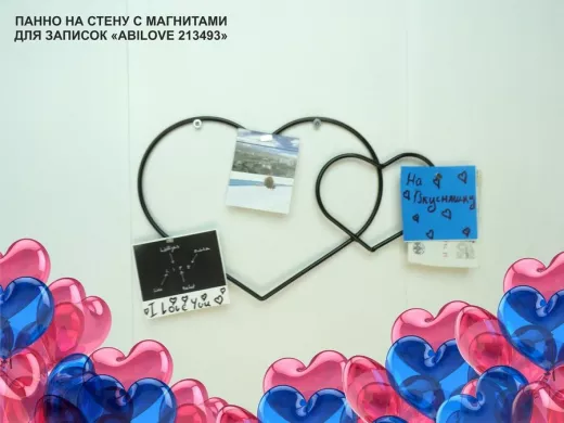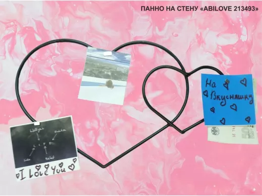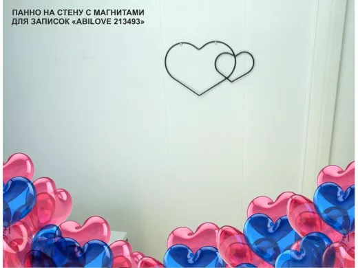 Панно настенное, декоратичное с 3 магнитами для записок и фотографий, два сердца, чёрный "ABILOVE 213493" подходит для оформления комнаты с помощью фотографий, картинок, вырезок. В набор входят: мудборд в виде сердец, магиты, комплектующие для крепления на стену.