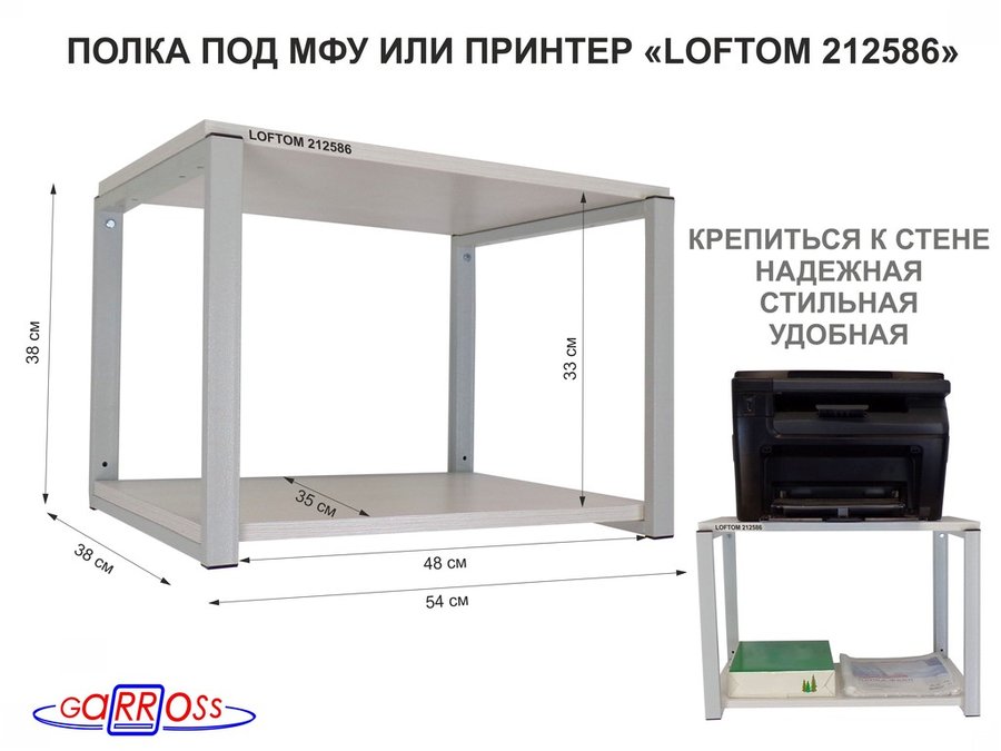 В корзину Купить в 1 клик Полка под МФУ или принтер, высота 38см серый "LOFTOM 212889" две полки 35х54см, лофт