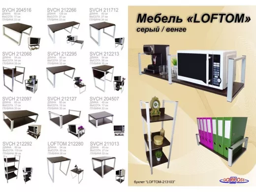 Полка для принтера, подставка для МФУ, 21см серый "LOFTOM 212617" две полки 35х54см, венге