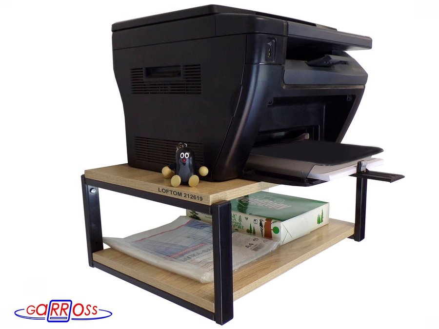В корзину Купить в 1 клик Полка для принтера, подставка для МФУ, 21см черный "LOFTOM 212619" две полки 35х54см, дуб сонома