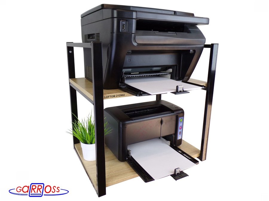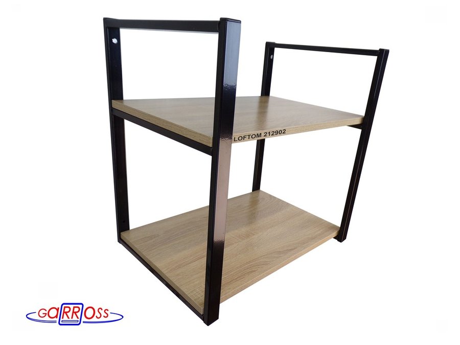 Полка под принтер или МФУ, высота 54см черная "LOFTOM 212902" 2 уровня, 35х54см, дуб