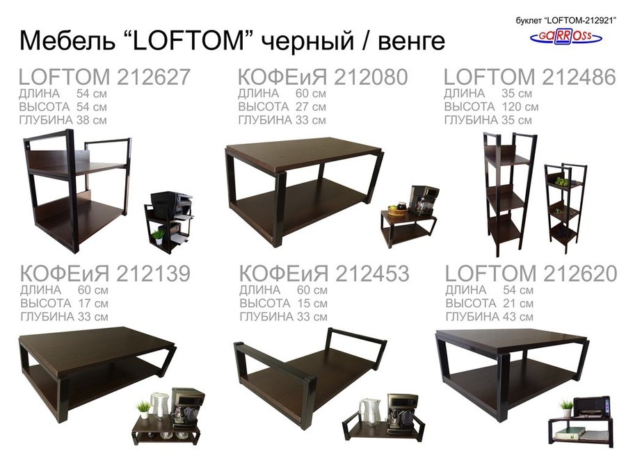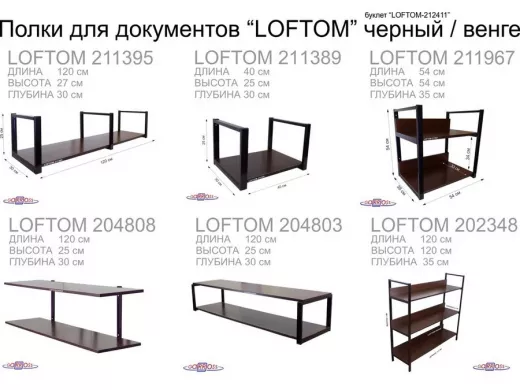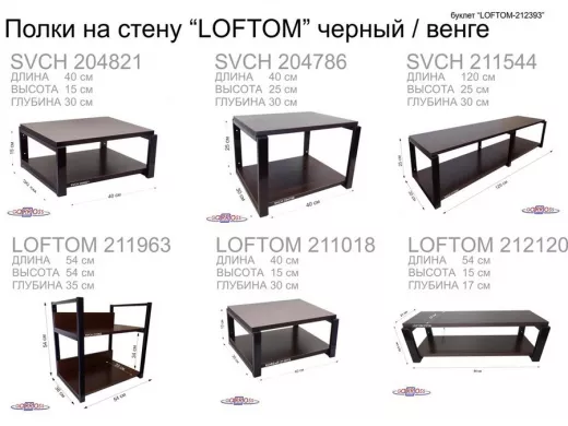 В корзину Купить в 1 клик Полка под принтер или МФУ, высота 54см черная "LOFTOM 212904" 2 уровня, 35х54см, венге