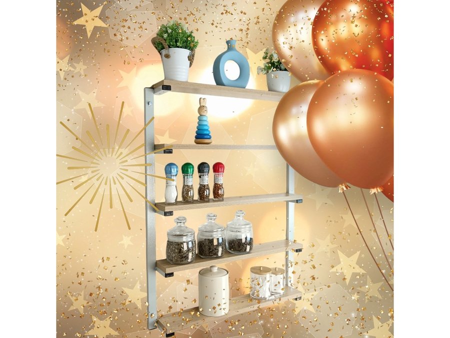 Полка для косметики, маникюра, гель-лаков "ШАРМЛЕУР 215111" 82х60х10 см, серый и дуб сонома