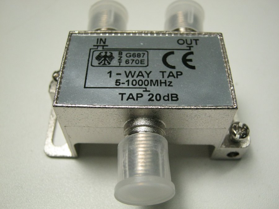 В корзину Купить в 1 клик Ответвитель на 1 вых. 20db 1-WAY TAP (2871/20) 5-1000 мГц