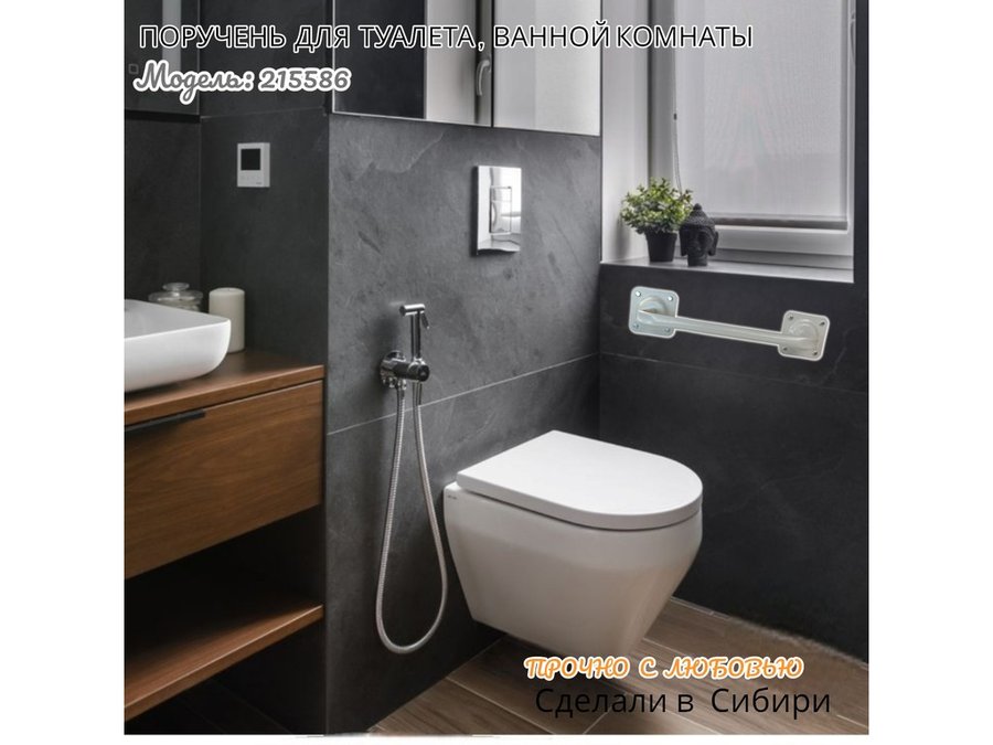 В корзину Купить в 1 клик Поручень для туалета и ванной комнаты к стене высота 13 см ширина 39 см "LOFTOM 215586" серый