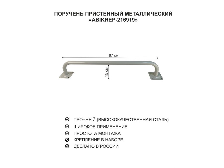 Поручень пристенный для домов снаружи и внутри, ширина 87см высота 16см "ABIKREP-216919" серый, 32мм