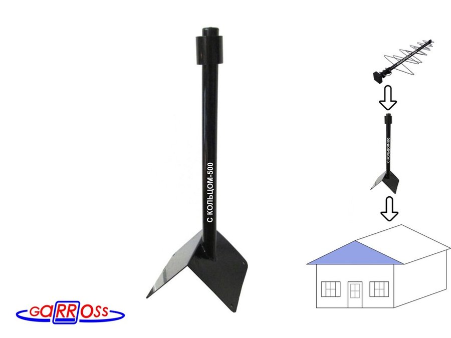 В корзину Купить в 1 клик Кронштейн антенный на конёк крыши "С КОЛЬЦОМ-500BK-17223" черный, высота 50см,труба 32мм,кольцо 50мм