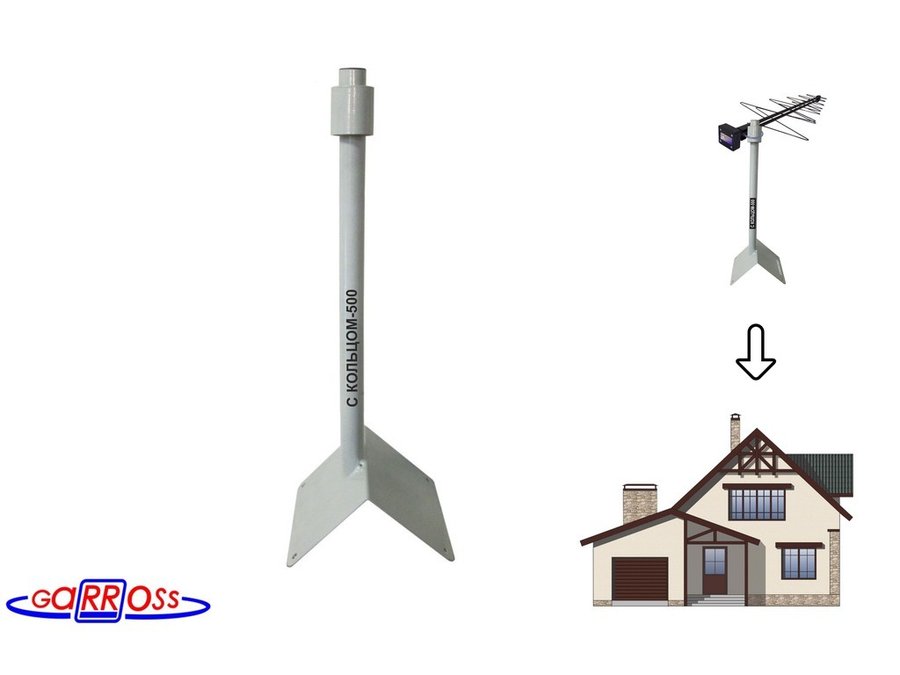 В корзину Купить в 1 клик Кронштейн антенный на конёк крыши "С КОЛЬЦОМ-500GR-17223" серый, высота 50см, труба 32мм,кольцо 50мм