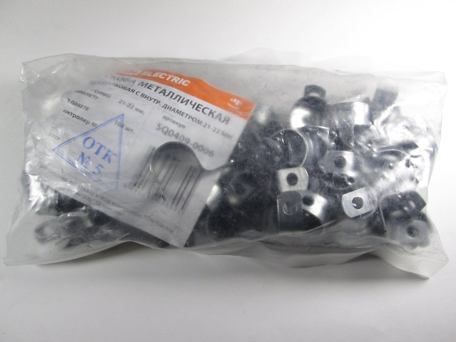 В корзину Купить в 1 клик Скоба (клипса) металлическая однолапковая с внутр. d 21-22 мм (100шт) TDM SQ0409-0006