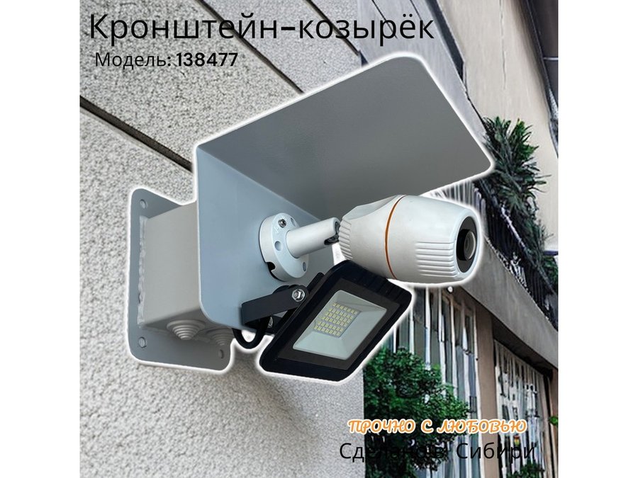 В корзину Купить в 1 клик Кронштейн для камеры и прожектора с боксом "HIWOLL-5500GR-138477" серый с козырьком, к стене