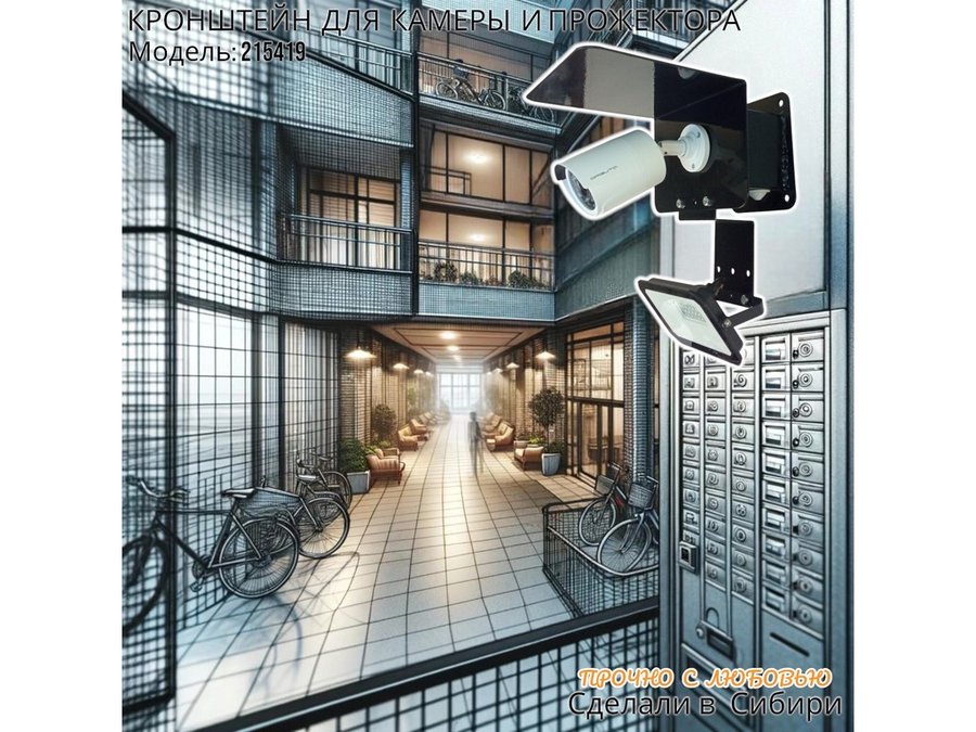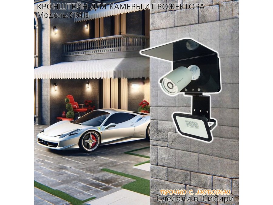 Современное надёжное решение для монтажа видеокамеры и прожектора на стену здания.