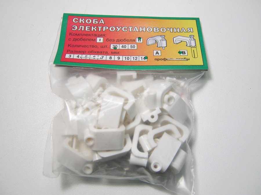 В корзину Купить в 1 клик Скоба 14мм (30шт) тип B электроустановочная для прямоугольного кабеля "Mego"