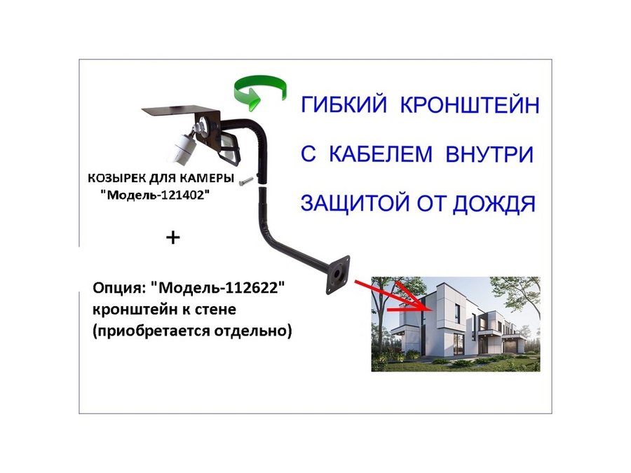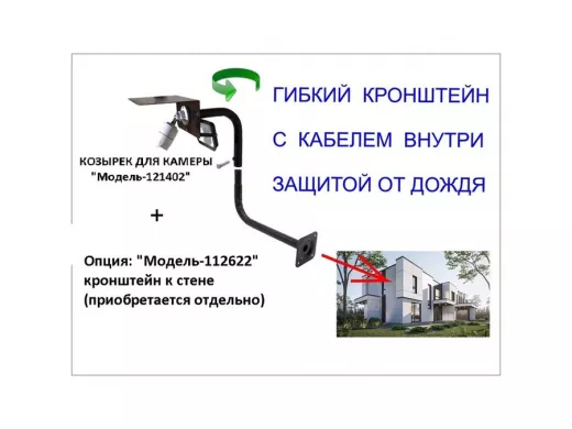 • Конструкция кронштейна имеет отверстие 25 мм у козырька ( где крепится камера), что позволяет проложить провода и спрятать в трубе соеденительные разъёмы.