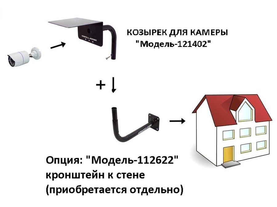 • Кронштейн с козырьком предназначен для крепления видеокамер и защиты их от дождя, снега и солнца.