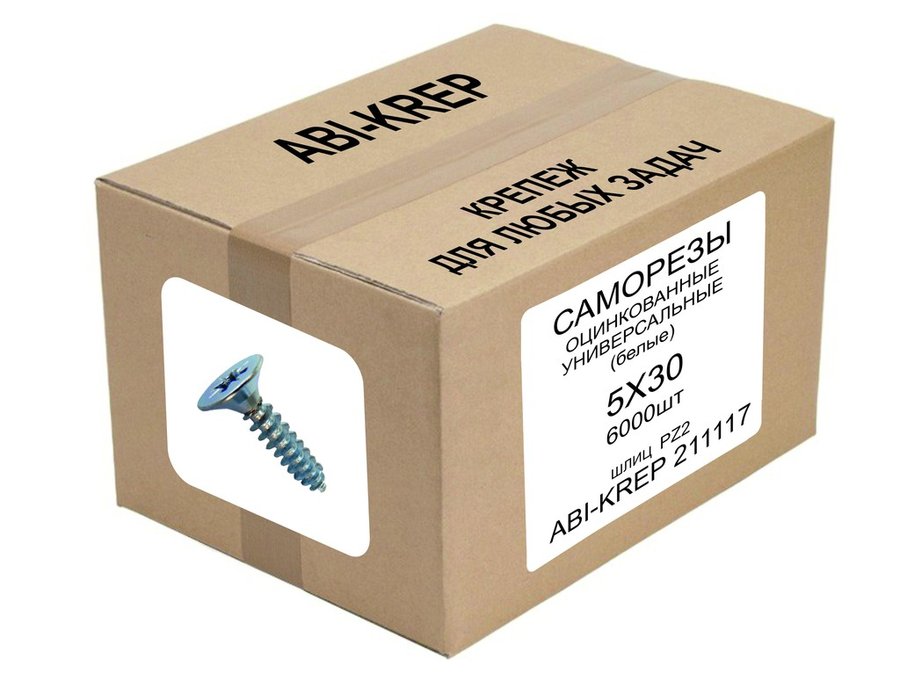 В корзину Купить в 1 клик Саморезы универсальные оцинкованные 5 х 30 белые ( 1шт) "ABI-KREP 211117" шлиц PZ2 2,38г