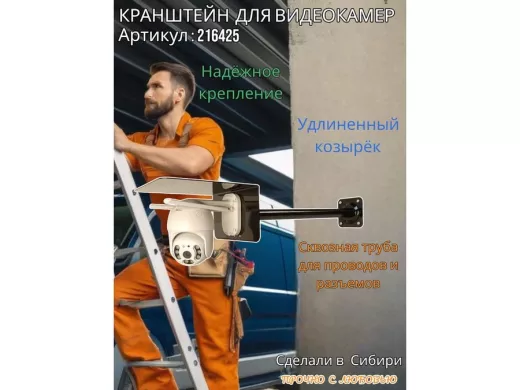 В корзину Купить в 1 клик Кронштейн для поворотной камеры с вылетом 50см и большим козырьком "HIWOLL-216425" черный, сталь