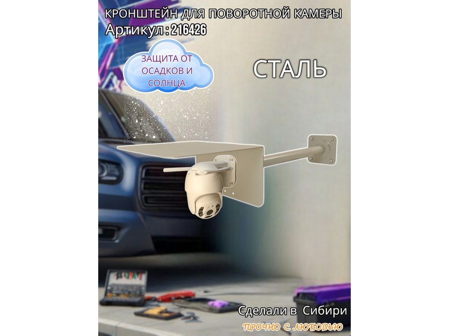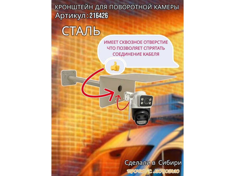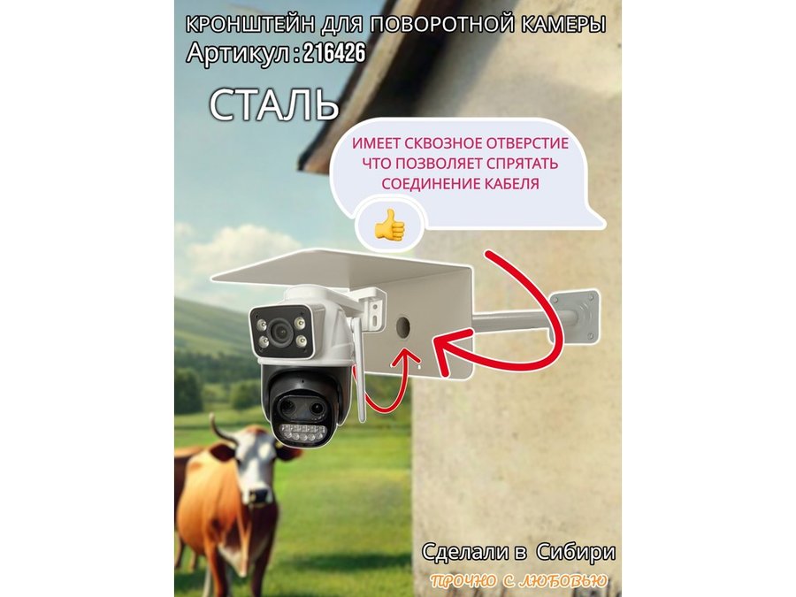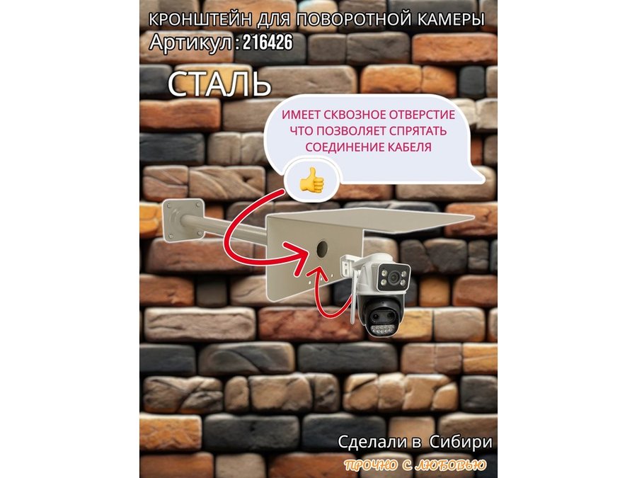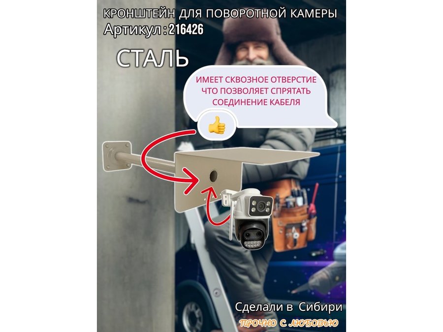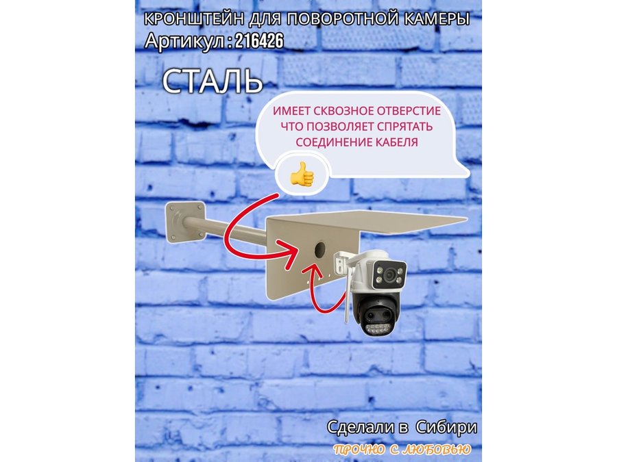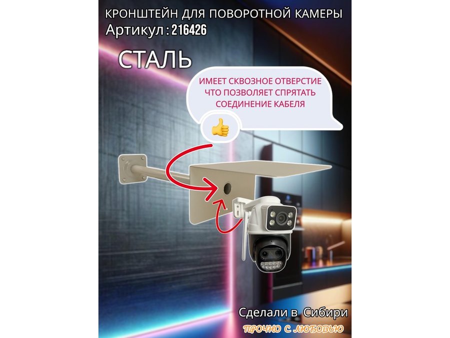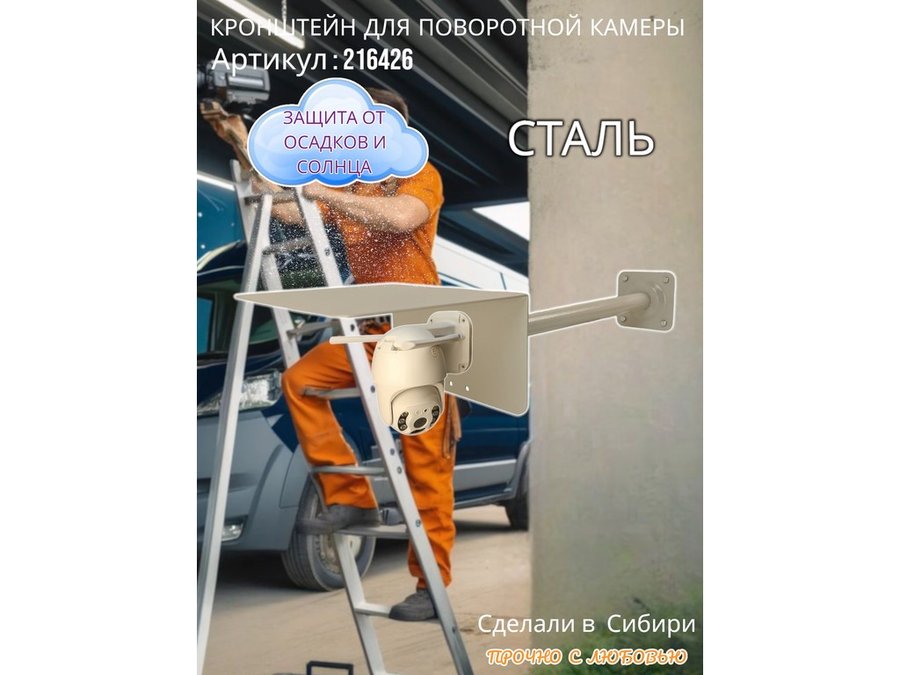 - Стальной кронштейн позволяет вынести камеру от стены на 50 см.