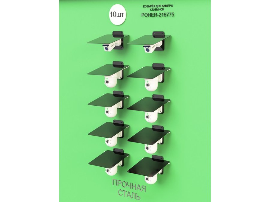 В корзину Купить в 1 клик Набор 10шт. Кронштейн-козырёк для камеры черный "POHER-216862" 24х27см, сталь 2 мм, разборный
