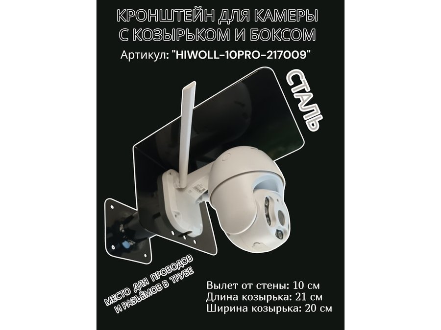 В корзину Купить в 1 клик Кронштейн с боксом и козырьком для видеокамеры "HIWOLL-10PRO-217009" черный, вылет 10см, сталь