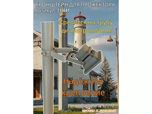 Кронштейн усиленный для прожектора на трубу диаметром 50мм "ХОП-1-50-215641" сталь, серый