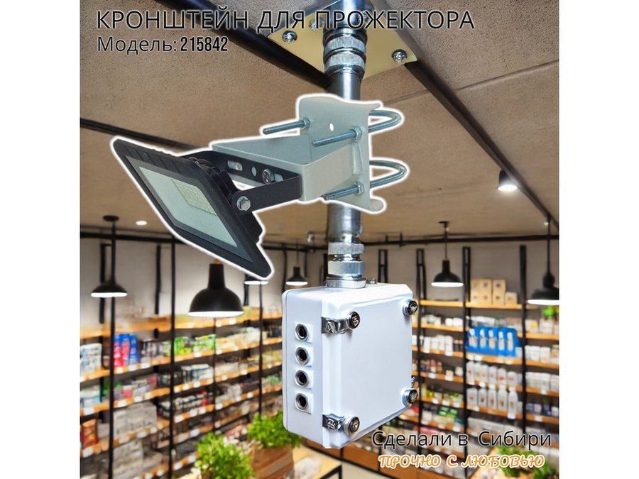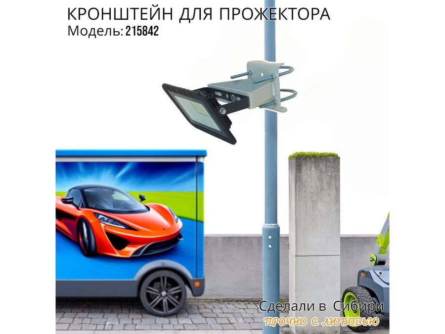 В корзину Купить в 1 клик Кронштейн усиленный для крепления прожектора на трубе до 51мм "ПРОЖЕКРЕП-215842" сталь, цвет серый