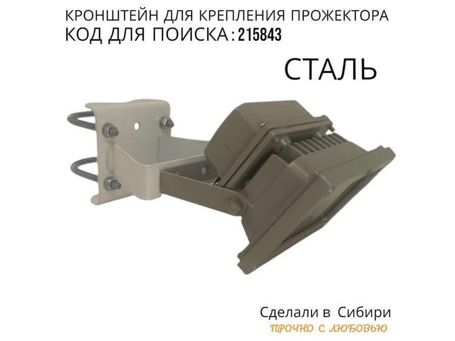 В корзину Купить в 1 клик Кронштейн усиленный для крепления прожектора на трубе до 51мм "ПРОЖЕКРЕП-215843" сталь, цвет белый