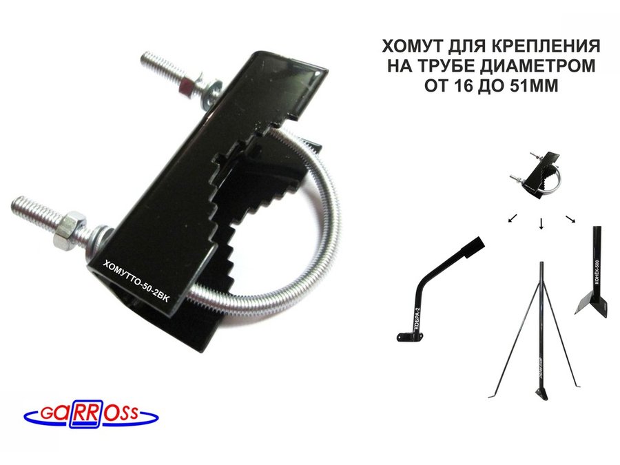 Кронштейн антенный "ХОМУТТО-50-2B-17924" для крепления на трубе диаметром 16...51мм,сталь 2мм,чёрный