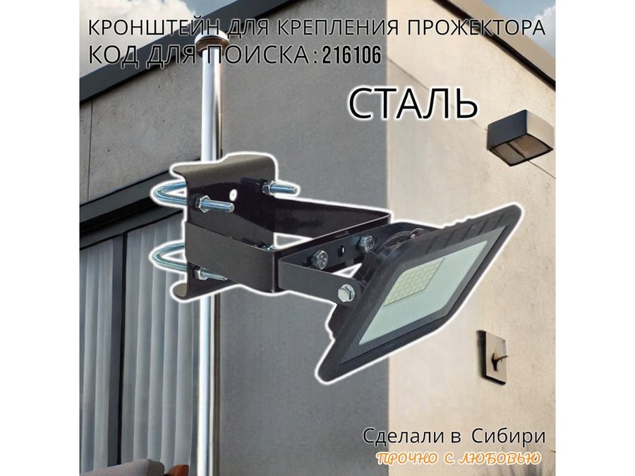 Кронштейн усиленный для крепления прожектора на трубе до 51мм "ПРОЖЕКРЕП-216106" сталь, цвет черный