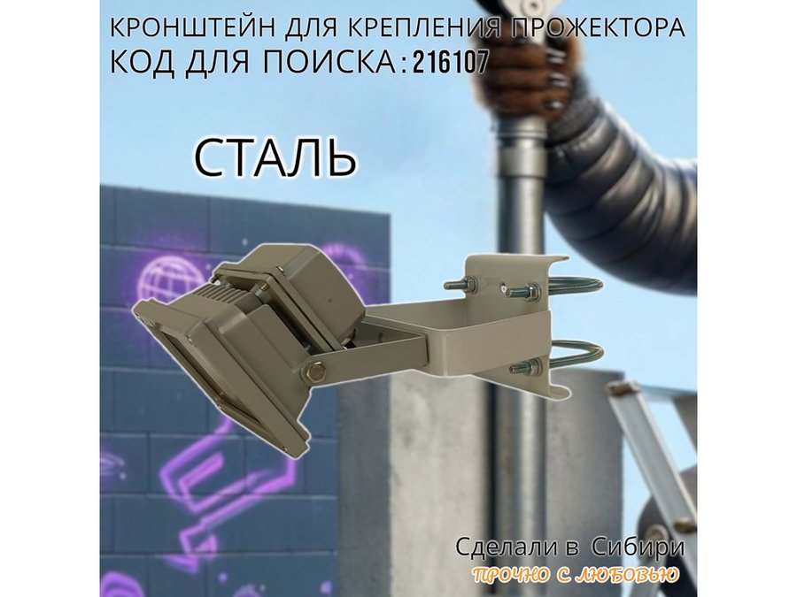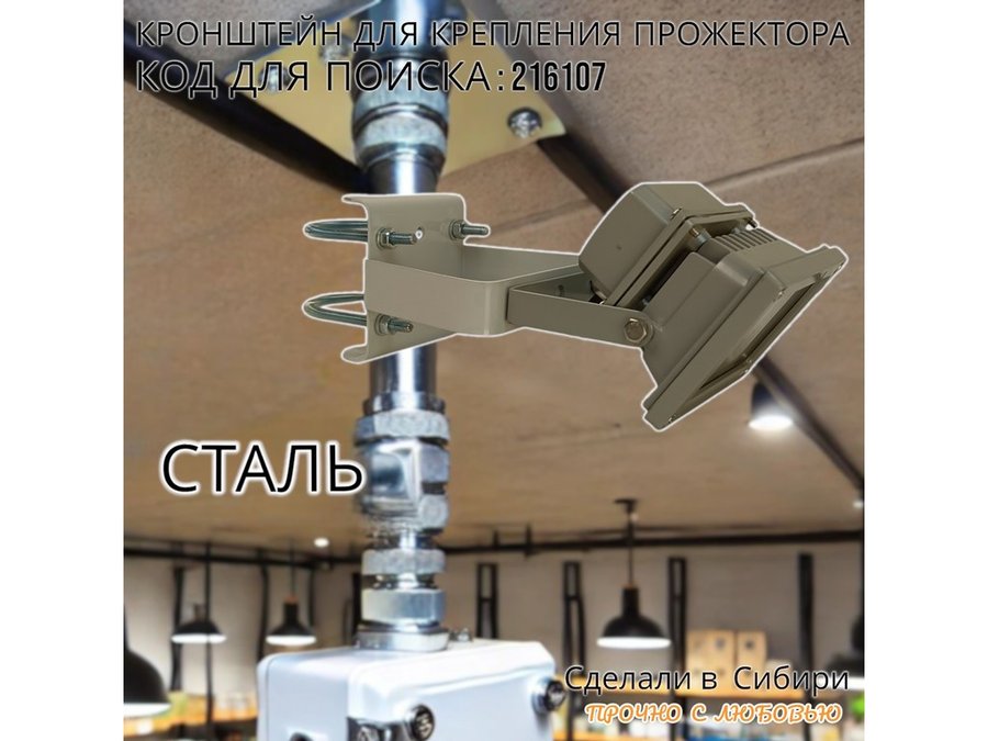 • Кронштейн усиленный предназначен для крепления светодиодных прожекторов на трубе диаметром от 15 до 51мм.