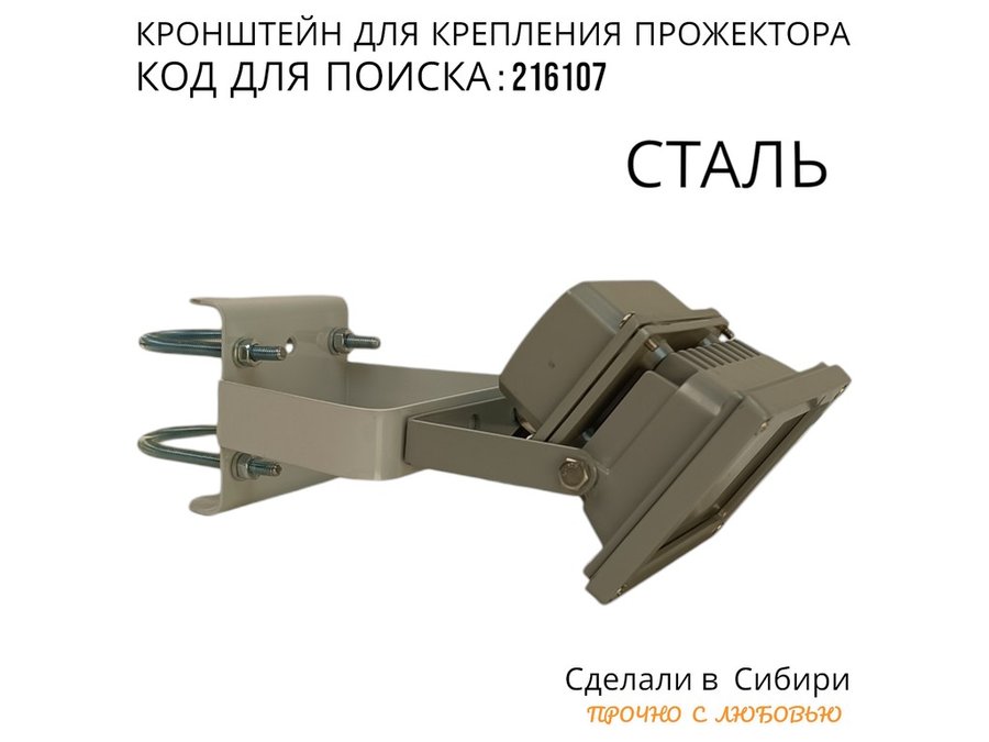 Кронштейн усиленный для крепления прожектора на трубе до 51мм "ПРОЖЕКРЕП-216107" сталь, цвет серый