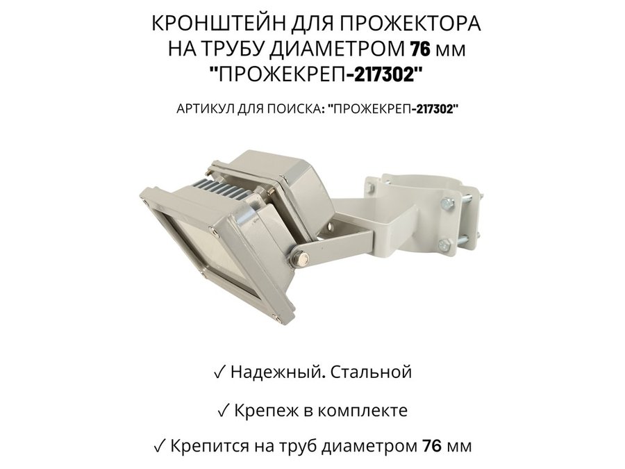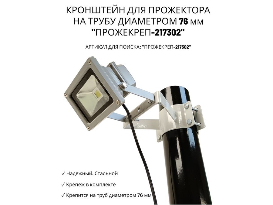 • Кронштейн усиленный предназначен для крепления светодиодных прожекторов на трубе диаметром 76 мм.На трубу крепится с помощью болтов с гайками.