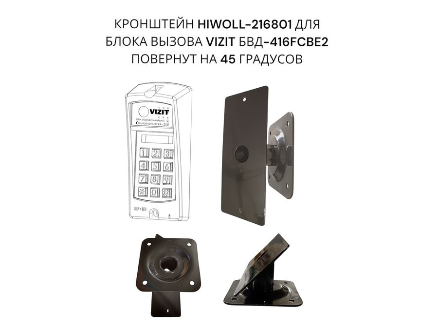 В корзину Купить в 1 клик Кронштейн 45гр для блока вызова домофона VIZIT БВД-416СВЕ2 182х80мм HIWOLL-216801 сталь 2мм, черный