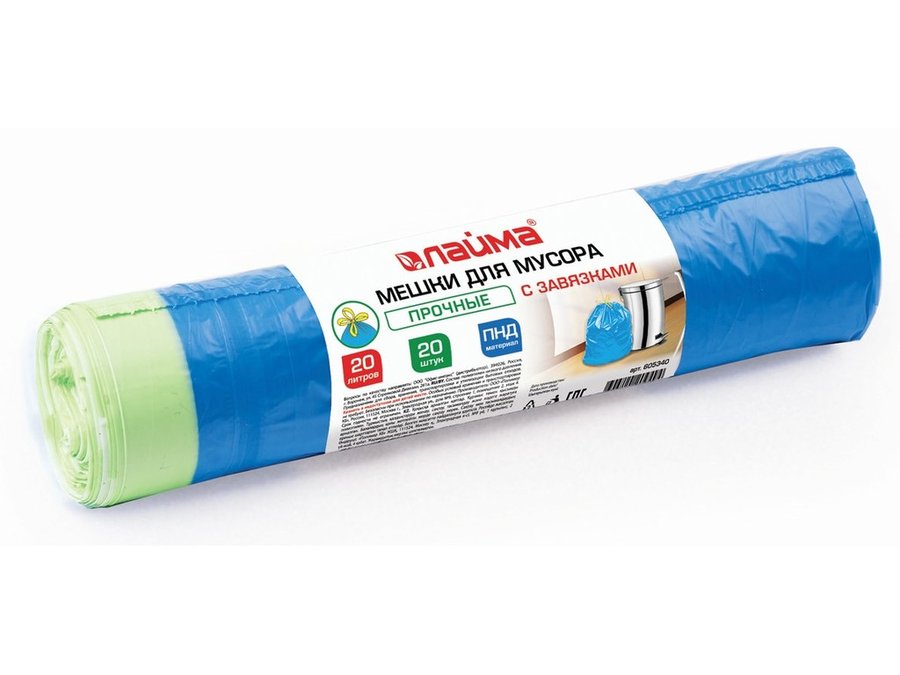 В корзину Купить в 1 клик Мешки для мусора 20литров "BR-78272", завязки, синие в рулоне 20 штук,ПНД, 13мкм, 45х52см,прочные