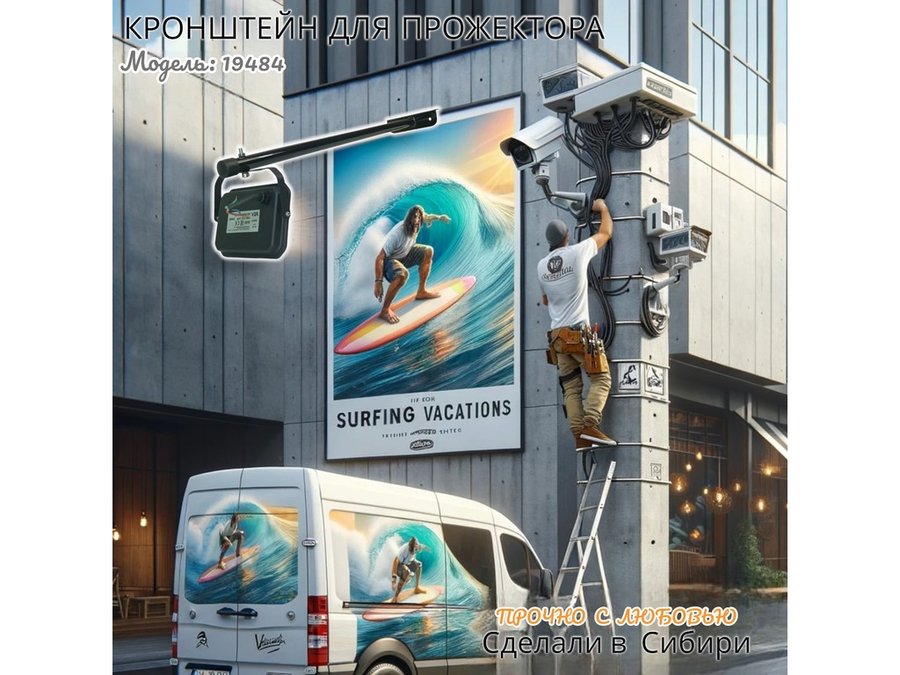 В корзину Купить в 1 клик Кронштейн для прожектора "ПОДСВЕТКА-1000-91987" белый с уголком на рекламные щиты, вылет 1метр
