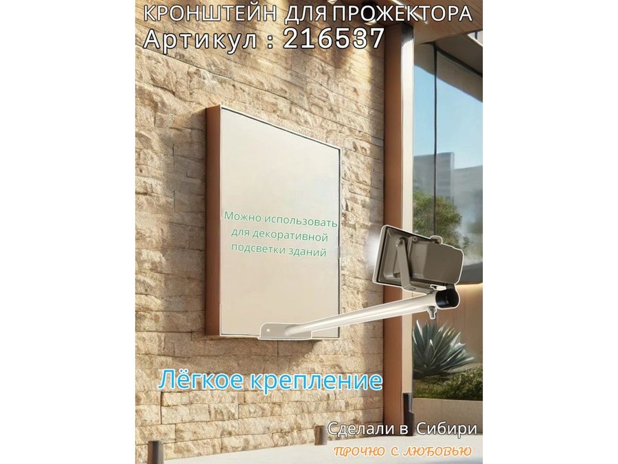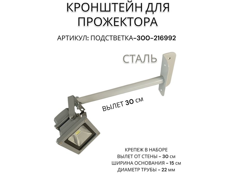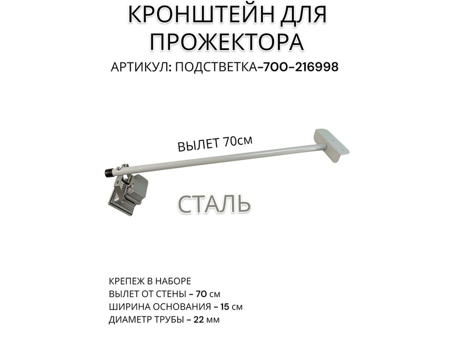 В корзину Купить в 1 клик Кронштейн для прожектора "ПОДСВЕТКА- 600-216537" белый с уголком на рекламные щиты, вылет 0,6м