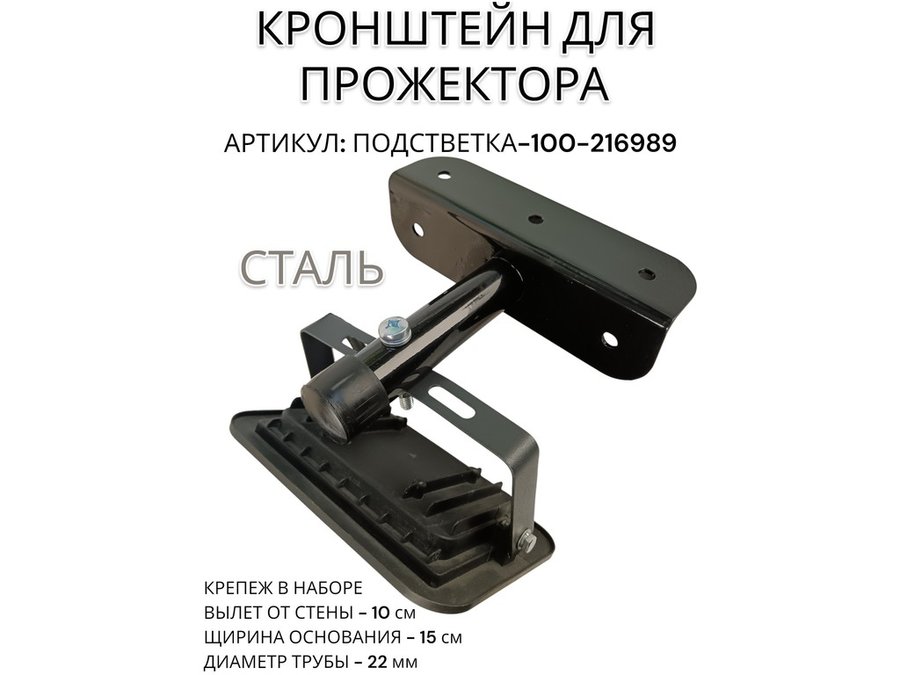 В корзину Купить в 1 клик Кронштейн для прожектора "ПОДСВЕТКА- 100-216989" черный с уголком на рекламные щиты, вылет 0,1м
