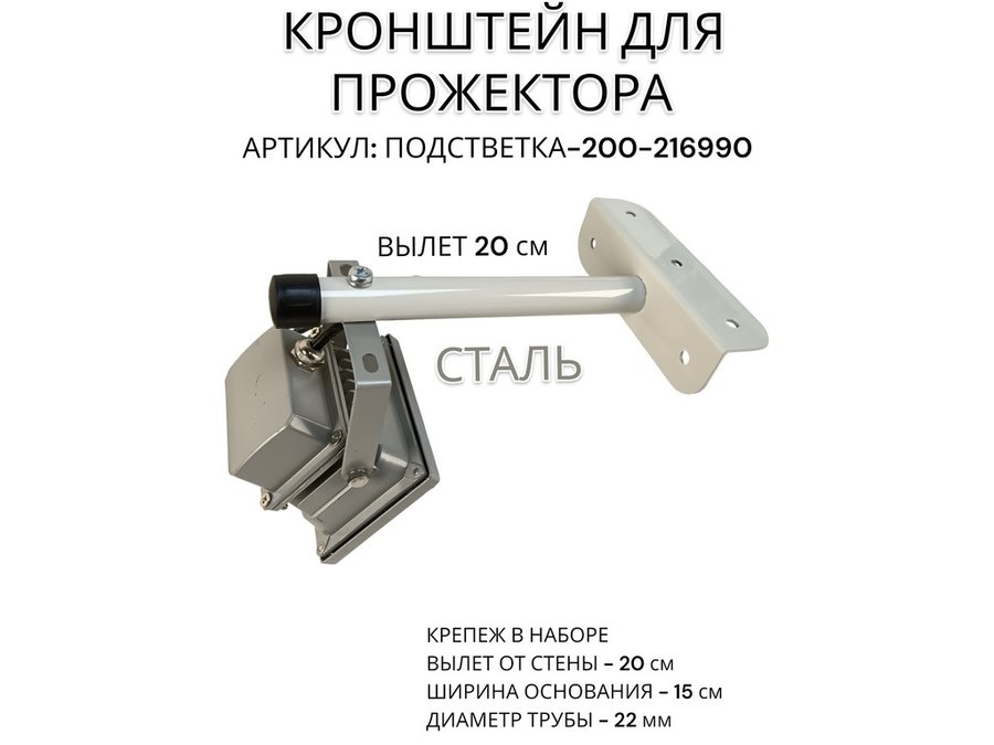 В корзину Купить в 1 клик Кронштейн для прожектора "ПОДСВЕТКА- 200-216990" серый с уголком на рекламные щиты, вылет 0,2м