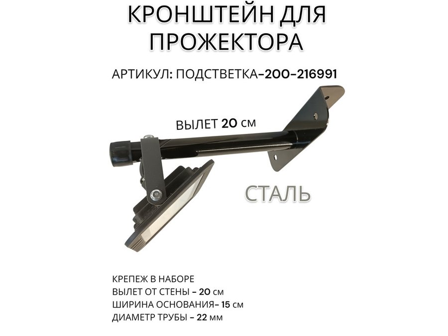 В корзину Купить в 1 клик Кронштейн для прожектора "ПОДСВЕТКА- 200-216991" черный с уголком на рекламные щиты, вылет 0,2м