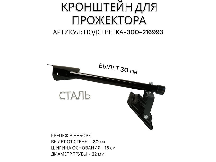 В корзину Купить в 1 клик Кронштейн для прожектора "ПОДСВЕТКА- 300-216993" черный с уголком на рекламные щиты, вылет 0,3м