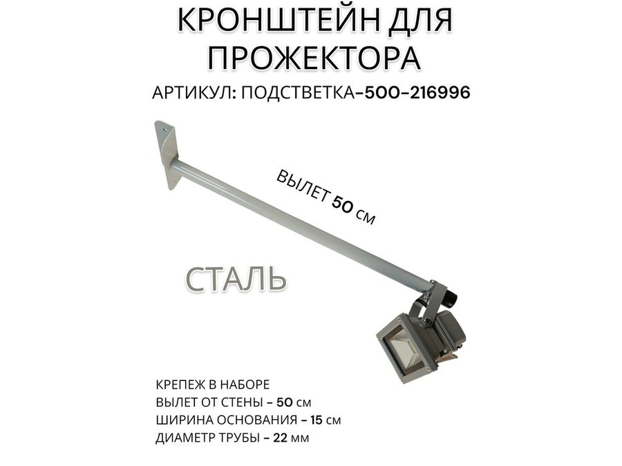 В корзину Купить в 1 клик Кронштейн для прожектора "ПОДСВЕТКА- 500-216996" серый с уголком на рекламные щиты, вылет 0,5м