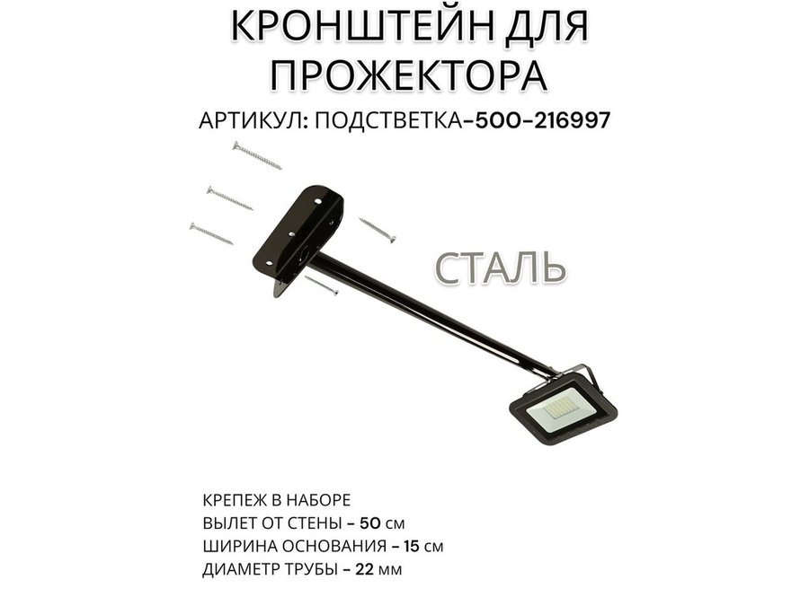 В корзину Купить в 1 клик Кронштейн для прожектора "ПОДСВЕТКА- 500-216997" черный с уголком на рекламные щиты, вылет 0,5м