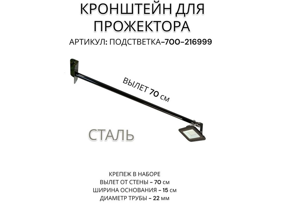 В корзину Купить в 1 клик Кронштейн для прожектора "ПОДСВЕТКА- 700-216999" черный с уголком на рекламные щиты, вылет 0,7м