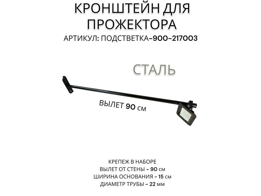 В корзину Купить в 1 клик Кронштейн для прожектора "ПОДСВЕТКА- 900-217003" черный с уголком на рекламные щиты, вылет 0,9м