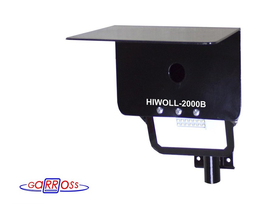 Кронштейн "HIWOLL-2000B-121405" чёрный с хомутами и козырьком на мачту для видеокамеры и прожектора