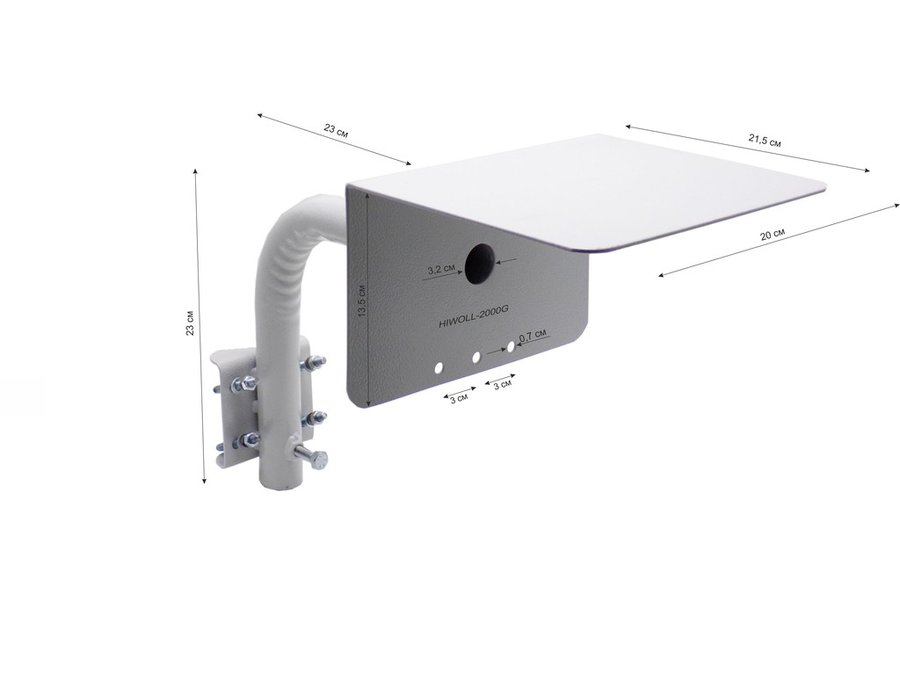 Кронштейн "HIWOLL-2000G-121407" серый с хомутами и козырьком на мачту для видеокамеры и прожектора