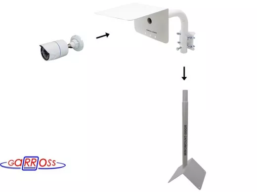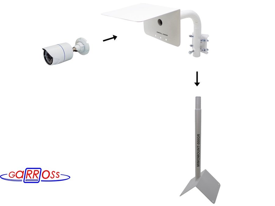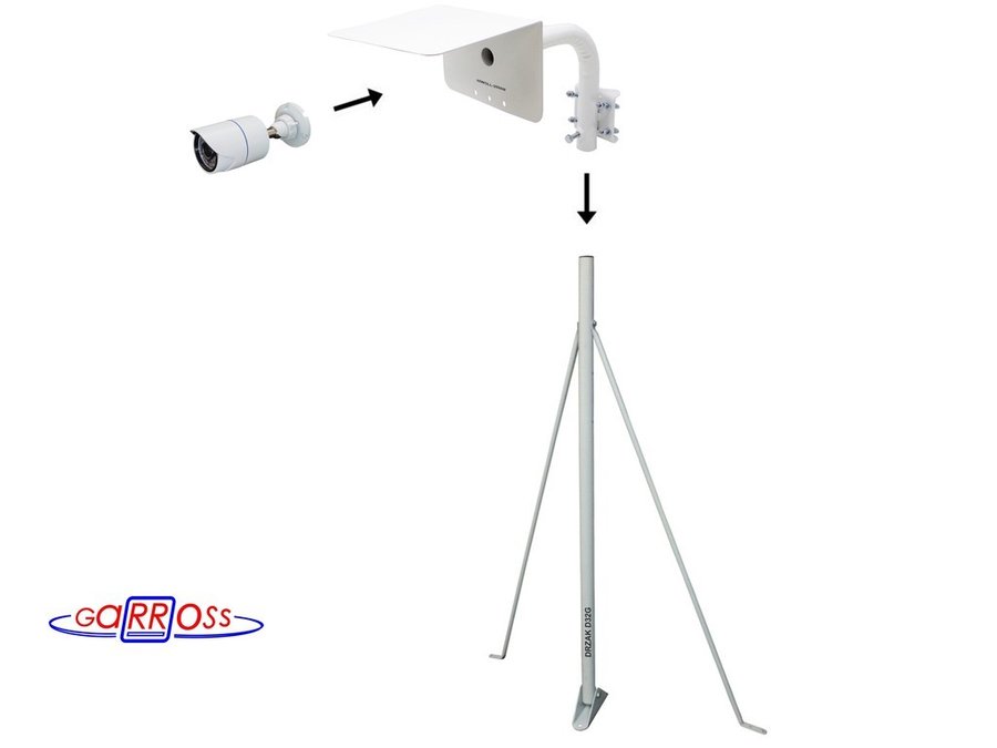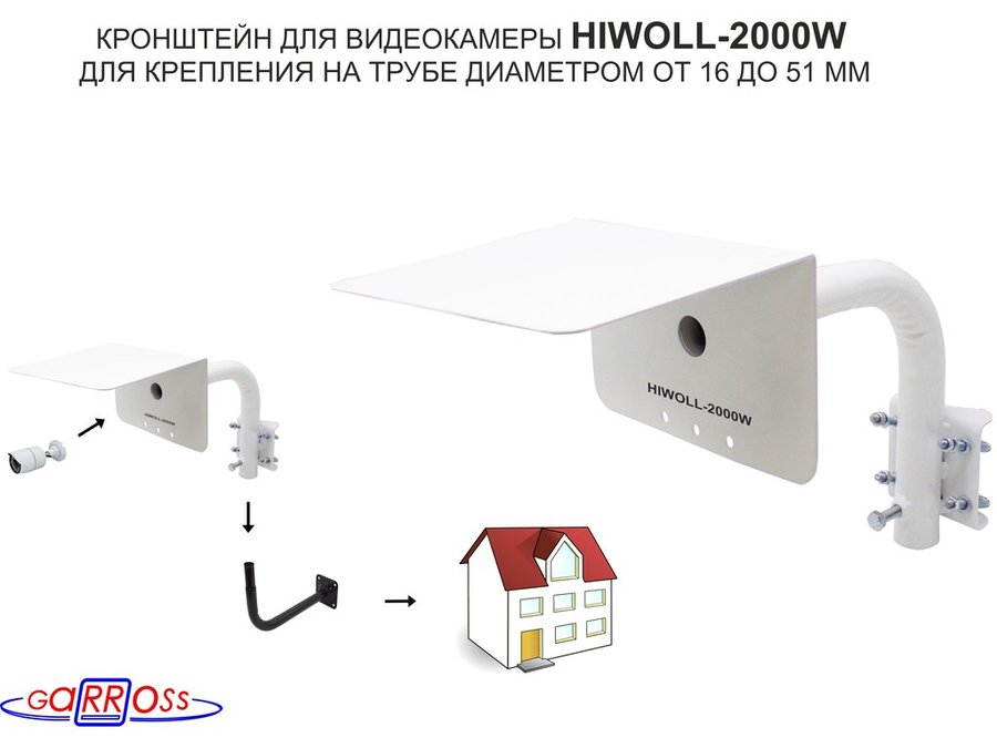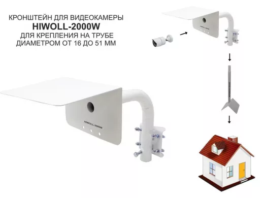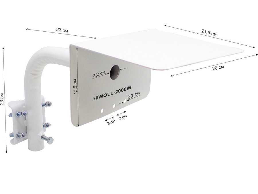 Кронштейн "HIWOLL-2000W-199090" белый с хомутами и козырьком на мачту для видеокамеры и прожектора